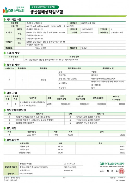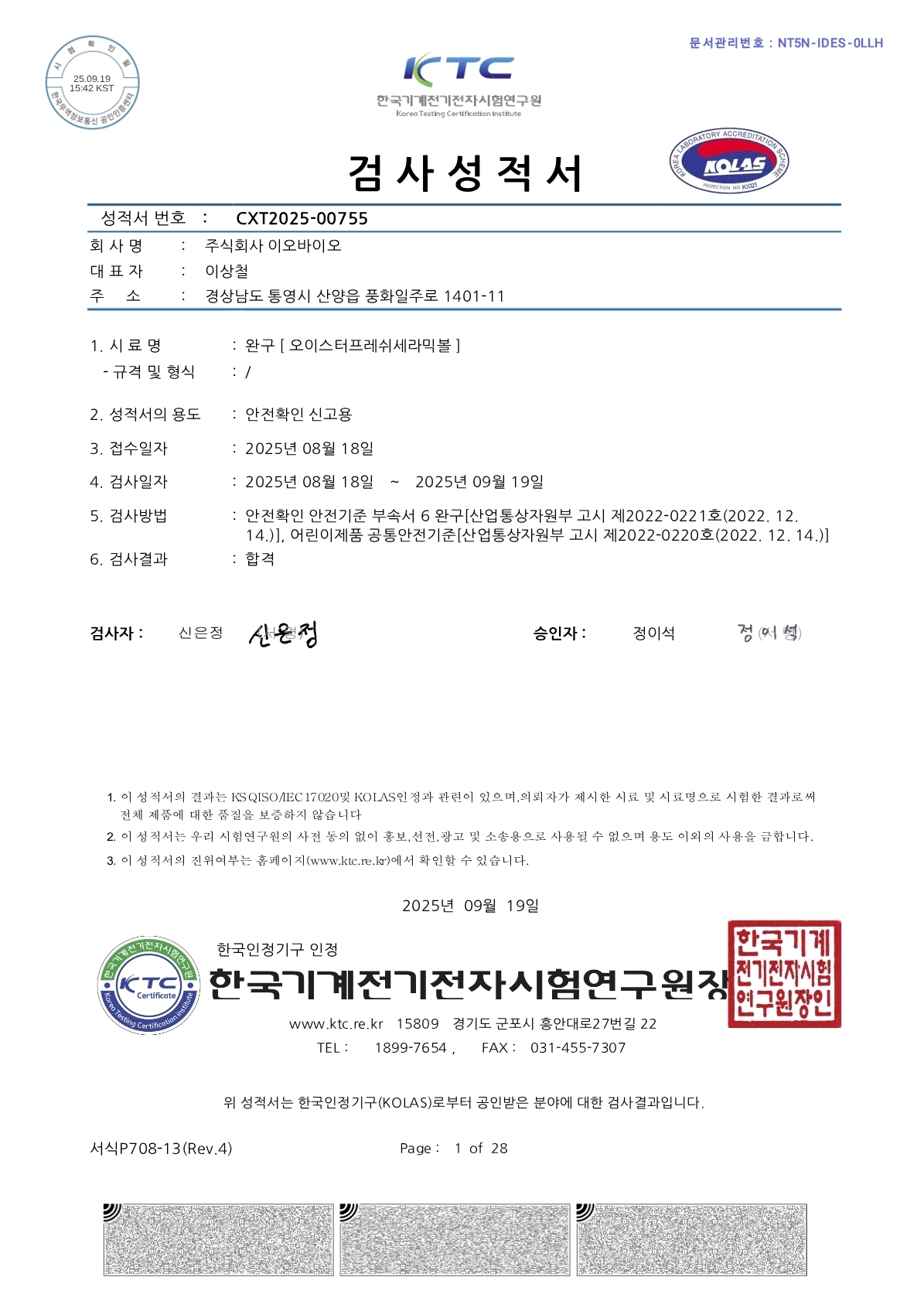 오이스터프레쉬 세라믹볼 안전기준 적합확인 증명서